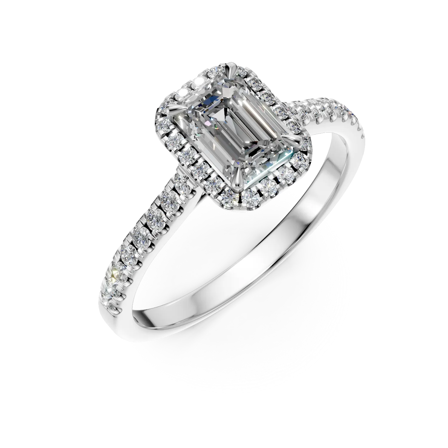 Inel de logodna din aur alb de 18K cu diamant de 0.33ct si diamante de 0.36ct