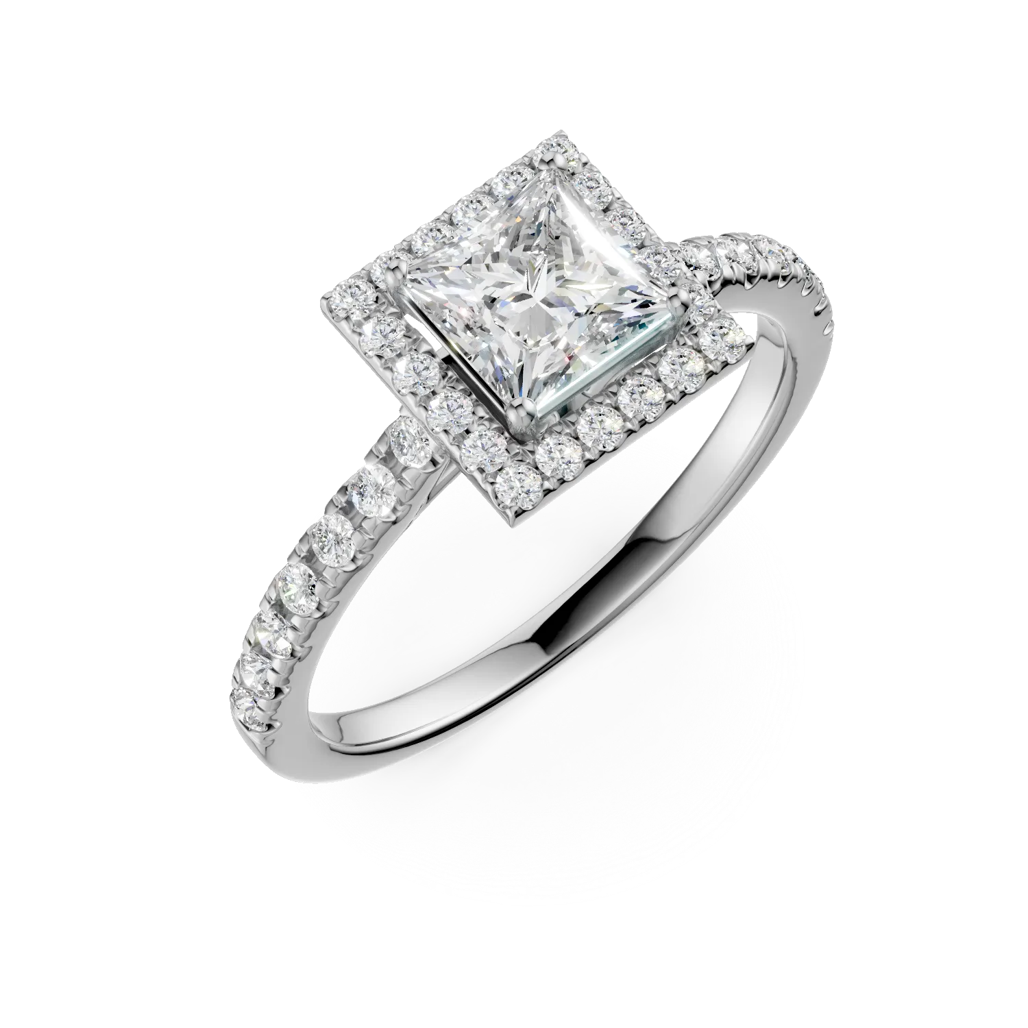 Inel de logodna din aur alb de 18K cu diamant de 1ct si diamante de 0.27ct